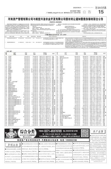 河南资产管理有限公司与鹤壁兴浚农业开发有限公司债权转让通知暨债务催收联合公告(HNZCCS-20230029)