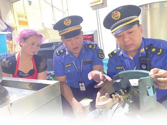 连日来,郑州市金水区城市综合执法局凤凰台中队在辖区餐饮等人员密集场所,对用气环境和燃气设施运行情况进行安全大检查。