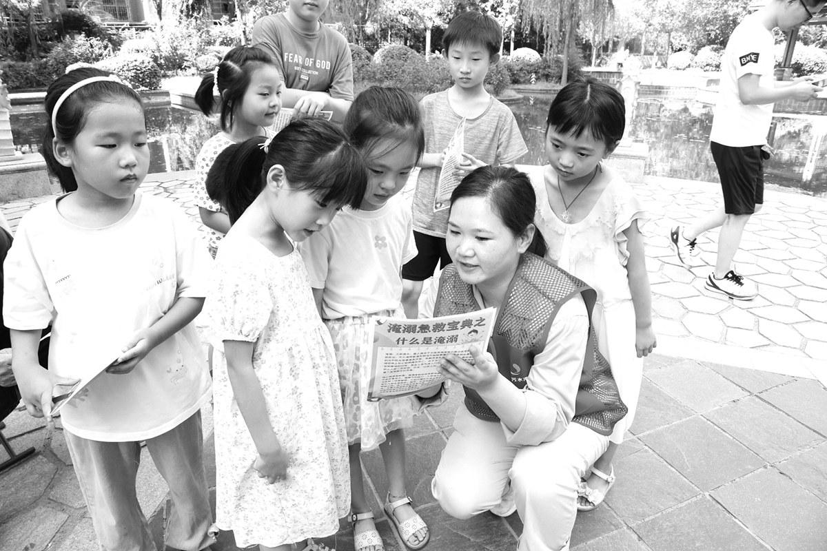 ▲8月4日,郑州市污水净化有限公司七彩虹志愿服务队联合电厂南路社区,在望湖花园小区开展未成年人防溺水安全宣传志愿服务活动。活动中,平安志愿者通过讲解和游戏互动的形式强化安全教育,让孩子们掌握防溺水知识技能,提高自救互救能力。
