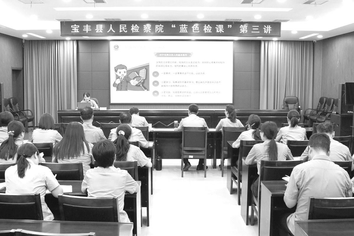 为贯彻落实平顶山市检察院提出的“英才养成”行动计划,全力推进检察工作现代化,近日,宝丰县检察院第三期“蓝色检课”开讲,该院第二检察部主任韩莉芳担任主讲人,该院党组书记、检察长闻延菲参加。