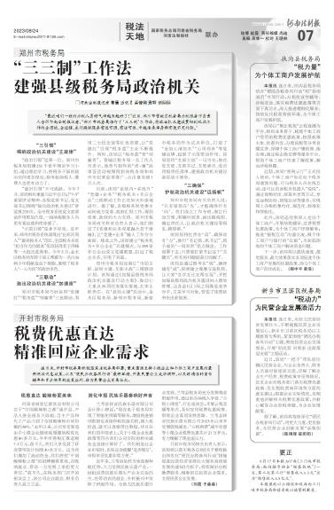郑州市税务局“三三制”工作法建强县级税务局政治机关