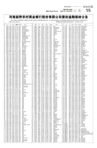 河南新野农村商业银行股份有限公司债权逾期催收公告