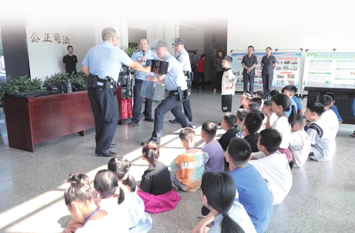 近日,卢氏县法院组织开展了以“‘童’筑法治梦体验零距离”为主题的干警子女开放日活动,邀请40名干警的未成年子女走进法院,零距离体验法院文化,筑牢法治信仰。图为活动现场,该院法警为孩子们模拟演示擒拿格斗,赢得阵阵掌声。