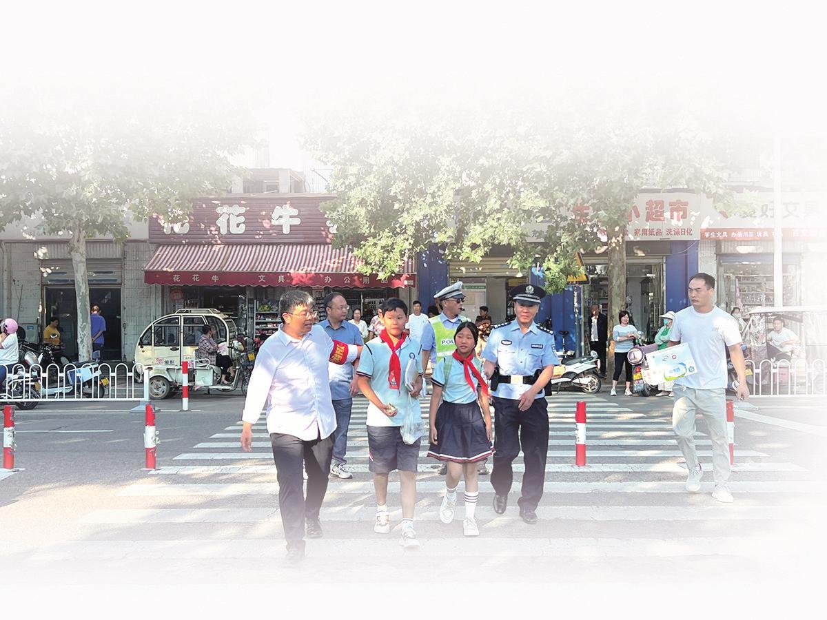 为进一步加强校园安全工作,8月29日,许昌市公安局魏都分局西关派出所烤厂警务室民警、辅警前往辖区湖滨路小学,引导护送学生过马路、入校园,积极维护学校周边交通秩序。河南法制报记者胡斌通讯员冉振凯摄影报道
