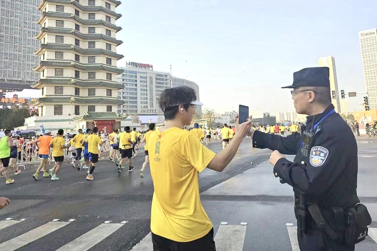 昨日,“2023郑州·黄河马拉松赛”在郑州市区举办。郑州市公安局管城分局民警带领商都义警志愿者,积极动员辖区综治、内保等力量共同参与,做好赛会保障各项志愿服务。