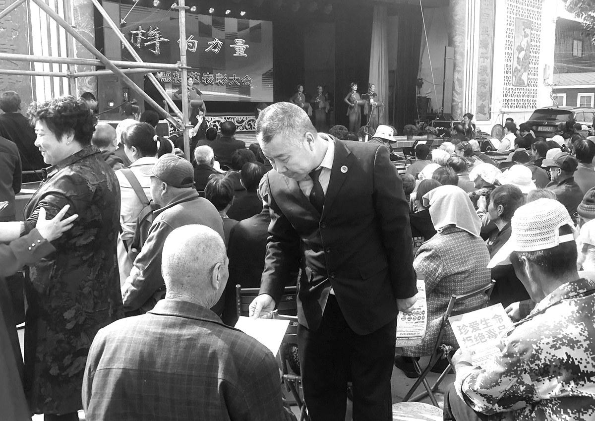 10月27日,正值灵宝市西阎乡水泉城村民间传统节会,灵宝市西阎司法所走进节会现场开展普法宣传,向群众发放普法宣传页。河南法制报记者宁晓波通讯员艳灵革斌摄影报道