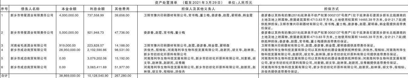 根据河南资产管理有限公司与新乡红培文化传播有限公司签署的《债权转让合同》【合同编号:HNZC-业务(2022)116】,河南资产管理有限公司已将其对下列债务人及其担保人享有的主债权及担保合同项下的全部权利,依法转让给新乡红培文化传播有限公司。河南资产管理有限公司与新乡红培文化传播有限公司联合公告通知各债务人、担保人以及其他相关义务人。 新乡红培文化传播有限公司作为上述债权的受让方,现公告要求公告清单中所列包括但不限于借款人、担保人、其他相关义务人及其承债主体、清算主体等,从公告之日起立即向新乡红培文化传播有限公司履行主债权合同、担保合同及其他相关合同约定的偿付义务或相应的担保责任及其他责任等。 特此公告。 河南资产管理有限公司 联系人:张先生 联系电话:18638209086 联系地址:河南自贸试验区郑州片区(郑东)金融岛中环路21号 新乡红培文化传播有限公司 联系人:麻先生 联系电话:15803736366 联系地址:河南省新乡市新飞大道98号金谷枫上613室 河南资产管理有限公司 新乡红培文化传播有限公司 2023年12月28日 注:1.本公告清单列示截至基准日的债权本金余额、利息余额、费用,基准日后债务人和担保人应支付的利息、违约金、相关费用等按照相关合同协议、生效法律文书及法律法规的规定计算。 2.若债务人、担保人及其他相关义务人因各种原因更名、改制、歇业、吊销营业执照或丧失民事主体资格的,请相关承债主体及/或主管部门代为履行义务或履行清算责任。 3.清单中的“担保人及其他义务人”包括但不限于抵押人、出质人、保证人、差补义务人等。 4.本公告清单列示的金额由于计算方法等原因与实际金额可能存在较大误差,具体以相关合同协议及有效法律文书计算为准。 5.本公告如有漏登、错登,以实际债权凭证为准。 |