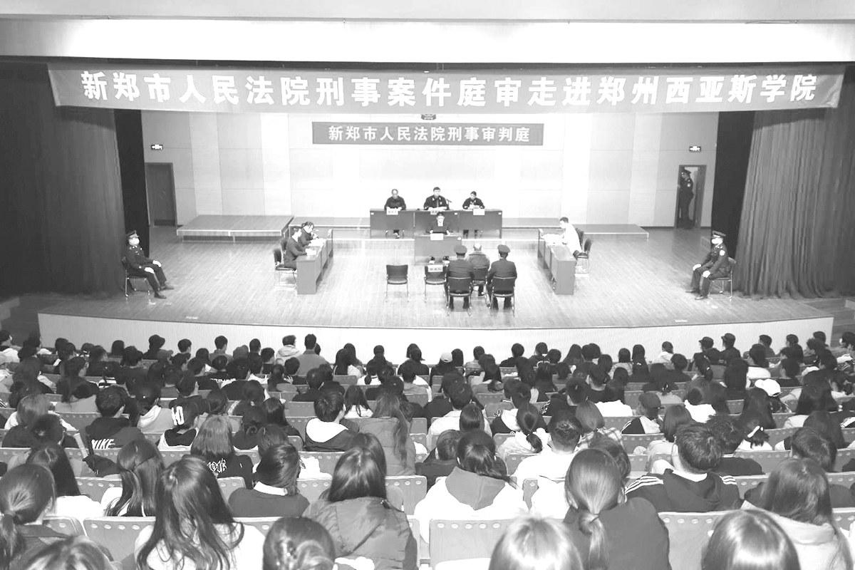 为进一步加强在校大学生法治教育,预防和减少青少年违法犯罪,近日,新郑市法院刑事审判庭将涉嫌帮助信息网络犯罪,涉嫌掩饰、隐瞒犯罪所得和涉嫌盗窃罪、故意伤害罪案件庭审“搬”进郑州西亚斯学院,以巡回审判的方式将庭审现场转为普法课堂,该校1000余名师生“沉浸式”旁听庭审。