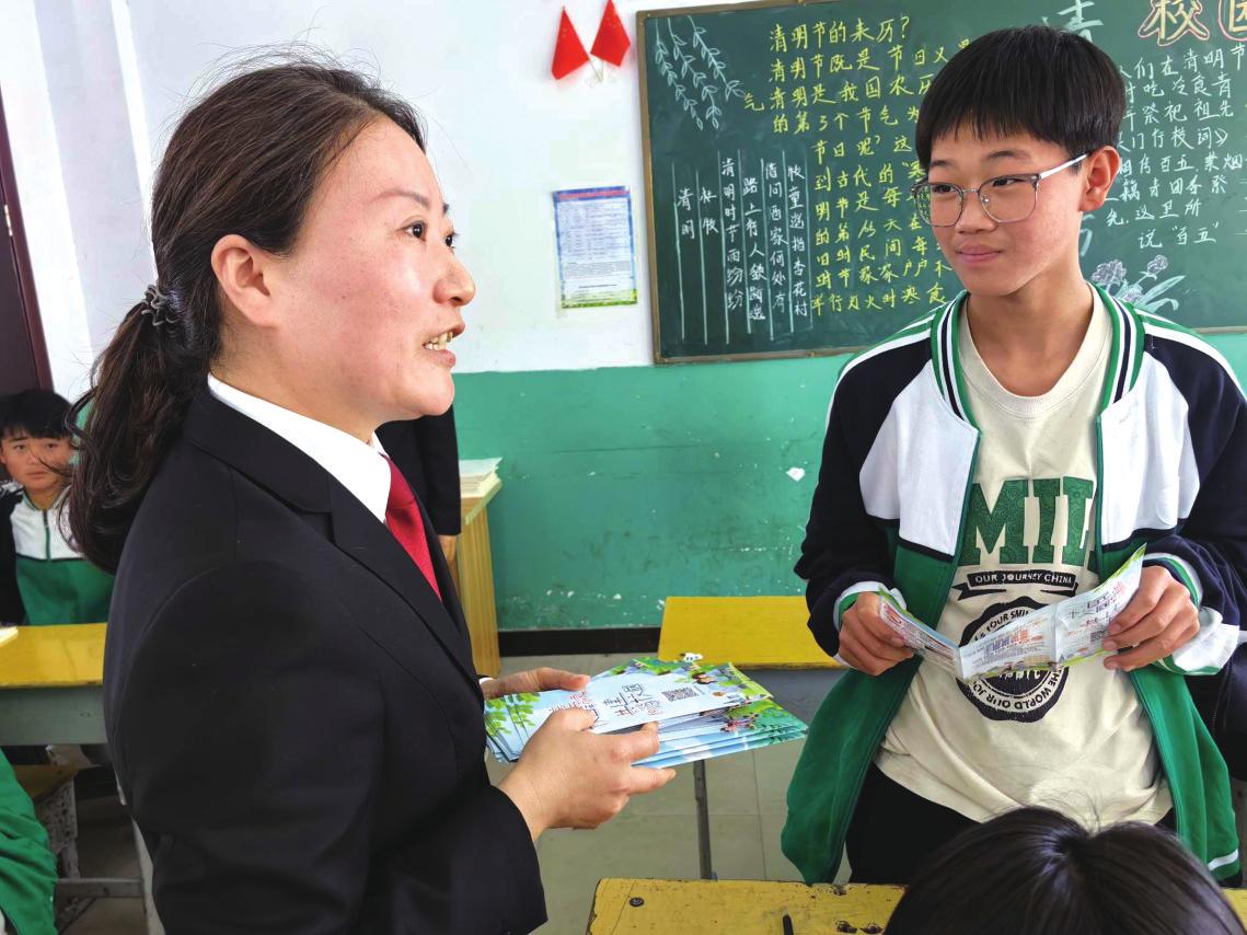近日,禹州市法院法官走进该市火龙镇中心学校,向学生们发放未成年人保护法宣传书籍、彩页,讲解法律知识。