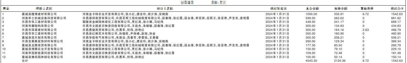 根据中原银行股份有限公司许昌分行(下称“中原银行”)与许昌瑞祥通商贸有限公司达成的《债权转让协议》,中原银行将其对下列公告清单所列借款人及其担保人享有的主债权及担保合同项下的全部债权(包括但不限于抵债协议、还款协议和其他相关协议以及担保债权、违约金债权、损失赔偿权、利息债权、转让方已经缴纳的诉讼费、保全费等项下的全部权利)依法转让给了许昌瑞祥通商贸有限公司。中原银行与许昌瑞祥通商贸有限公司特公告通知各借款人、担保人以及其他相关各方,自公告之日起立即向许昌瑞祥通商贸有限公司履行还本付息义务或承担相应的担保责任。 许昌瑞祥通商贸有限公司作为下列债权的受让方,现公告要求公告清单所列借款人及其担保人(含相关承债主体、清算主体),自公告之日起立即向许昌瑞祥通商贸有限公司履行主债权合同及担保合同约定的还本付息义务或承担相应的担保责任。 特此公告。 中原银行股份有限公司许昌分行 许昌瑞祥通商贸有限公司 2024年7月4日 中原银行联系方式: 地址:河南省许昌市建安大道东段 联系人:娄先生 电话:0374-2696166 许昌瑞祥通商贸有限公司联系方式: 地址:许昌市魏都区西大街道魏源广场3幢6层601 联系人:杨先生 电话:17746999222 注:1.本公告清单列示各债权基准日的贷款本金、利息余额。借款人和担保人(含相关承债主体、清算主体)应支付给许昌瑞祥通商贸有限公司的债务金额按借款合同、担保合同、抵债协议、还款协议和其他相关协议及中国人民银行的有关规定或生效法律文书确定的方法计算;已经进入诉讼程序并已由中原资产垫付的应由借款人及/或担保人、承债主体、清算主体负担的诉讼费、律师费等以有关法律文书确定的金额为准。 2.若借款人、担保人因各种原因更名、改制、歇业、吊销营业执照或丧失民事主体资格的,请相关承债主体及/或主管部门代为履行义务或履行清算责任。 3.下列主债务人、担保人如有疑问,请与中原银行或许昌瑞祥通商贸有限公司联系。 4.本公告如有漏登、错登,以实际债权凭证为准。 |