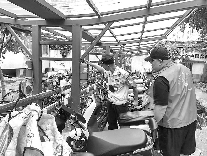 ▲近日,郑州市中原区建设路街道巡防中队配合协作路社区网格员,深入沿街门店、社区楼院开展消防隐患排查工作。河南法制报记者宁晓波通讯员王辉摄影报道