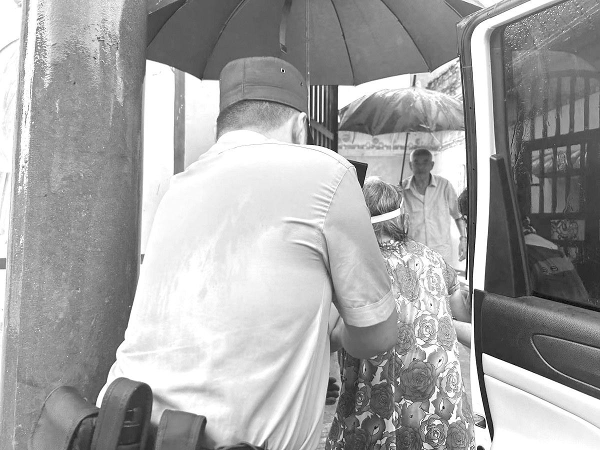 7月27日,浚县公安局卫溪派出所指导员张剑峰带领民警张晨晖、见习民警牛航等人冒雨巡逻时,在北街发现一名说不清自己姓名和家庭住址的老人,通过研判分析掌握了老人的基本情况后将其送回家。