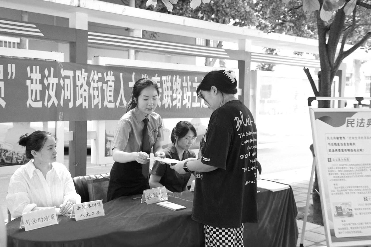 8月20日,郑州市中原区检察院组织干警,深入郑州市汝河路街道和棉纺路街道的人大代表联络站,开展“美好生活民法典相伴”主题法治宣传活动,向社区居民普及民法典相关法律知识,并就群众提出的问题进行解答。