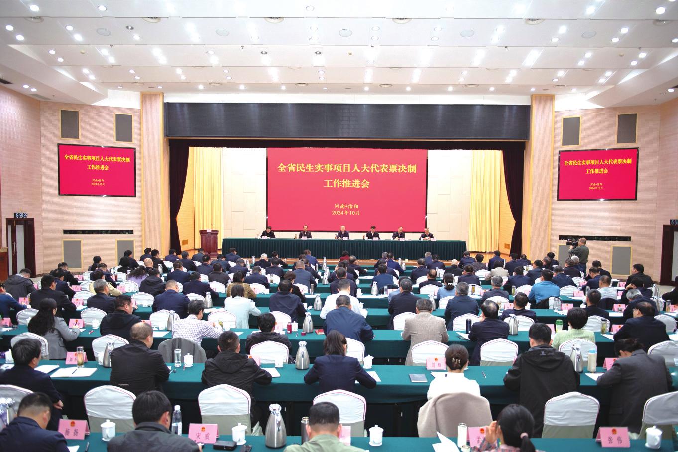 会议现场 推行民生实事项目人大代表票决制是坚持好、完善好、运行好人民代表大会制度的重要举措,是发展全过程人民民主的有效载体,是推进基层治理体系和治理能力现代化的重要抓手。那么,我省各市开展民生实事项目人大代表票决制的做法有哪些亮点?取得了哪些成效?10月22日,全省民生实事项目人大代表票决制工作推进会在信阳召开,会议实地观摩了信阳市开展民生实事项目人大代表票决制的做法和成效。 1召开人大代表票决制工作推进会 为贯彻落实省委关于全面推行民生实事项目人大代表票决制的有关部署要求,10月22日,全省民生实事项目人大代表票决制工作推进会在信阳召开。 省人大常委会党组书记、副主任李亚出席会议并讲话,副主任何金平主持会议。 李亚指出,推行民生实事项目人大代表票决制是坚持好、完善好、运行好人民代表大会制度的重要举措,是发展全过程人民民主的有效载体,是推进基层治理体系和治理能力现代化的重要抓手。他强调,要把坚持党的领导这条主线贯穿始终,严格把好项目征集筛选、审议票决、监督评议“三个关口”,切实增强票决制工作的质量和效果。要注重统筹把握,处理好自身探索与统一规范的关系、尽力而为与量力而行的关系、尊重民意与为民负责的关系、群众广泛参与与代表作用发挥的关系,推动形成各方面同题共答、同向发力的良好局面,为推进中国式现代化建设河南实践作出新的更大贡献。 秘书长吉炳伟出席会议。各省辖市及济源市人大常委会主任,部分县(市、区)、乡镇人大相关负责同志等参加,6位市县乡人大负责同志作了交流发言。会议还实地观摩了信阳市开展民生实事项目人大代表票决制的做法和成效。 2广泛征集民生实事项目建议 确保广泛参与是实施票决制的前提,也是充分体现民心民意的基础。郑州市人大常委会积极引导人大代表履职尽责,发挥代表根植人民群众的独特优势,依托459个代表小组、760个代表联络站(16个省级基层示范点、80个市级基层示范点)、128000余个微网格等各种渠道,组织代表接待选民、走访人民群众,广泛征集民生实事项目建议。广大代表积极参与,有的利用自身专业优势,制作曲艺作品《民生实事大家提》、唱响“河洛大鼓”《齐心协力为民生》等,以群众喜闻乐见的方式进行宣传,提高票决制工作的社会认知度。同时,郑州市人大常委会还通过政务网站、微信公众号、市属媒体等,发布征集公告,面向社会公众公开征集民生实事建议。 票决制决定的是民生实事,为充分听取群众意见、反映群众意愿,得到群众的认可和支持,原阳县依托人大代表联络站(点)和开展人大代表调研周活动等方式,征集各级人大代表和选民的意见建议。县政府将三个层面征集的民生实事项目,按照“急需先立、成熟先立、好中选优”的原则,进行梳理筛选,初步拟定票决候选项目,经县政府常务会议研究,报请县委常委会审定后,县人大常委会将确定的民生实事候选项目列入县人代会会议议程,提请全体代表票决。 3全力督办民生实事项目 “做好民生实事项目人大代表票决制工作,既要征集好、表决好,更要监督好、推动好,以实际成效彰显人民代表大会制度优势。”南阳市卧龙区人大常委会相关负责人介绍,在制定年度工作要点时,区人大常委会将民生实事项目的实施列入年度监督工作计划,制订监督落实方案,由常委会领导牵头,区人大专门委员会、常委会各工委办对10件民生实事项目进行揭榜领办,纳入台账,进行台账式管理,主任会议定期听取民生实事项目督办情况和政府承办部门进展情况汇报,针对民生实事项目涉及面广或者落实难度大、推进缓慢的问题,区人大常委会及时进行重点督办。 为把民生实事真正办到群众的心坎上,鹤壁市淇县高村镇建立了民生实事办理评价机制,年末对照项目清单,组织承办口线(站所)、人大代表、群众召开民生实事点评会,集中晾晒办理成效,对评价为不满意等次的,由代表联络站交由承办口线(站所)重新办理,坚决做到问题不解决不放过、群众不满意不放过。特别是群众反映的就近就业难问题,市县人大代表积极协调上级部门,乘借乡村振兴政策的有利东风,先后引进了舞蹈鞋、伞架加工等乡村微项目,实现了一大批群众在家门口就业。 4把民生实事办到群众心坎上 2022年以来,信阳市大力发展全过程人民民主,全面建立实施覆盖市县乡三级的民生实事项目人大代表票决制,着力把民生实事办到老区人民的心坎上。 信阳市坚持发展成果由人民共享,在就业创业方面,建成青年就业创业中心11个,开展“人人持证、技能河南”劳动力培训69万人次;在基础教育方面,新建改建中小学校、幼儿园144所;在养老服务方面,建设美好邻里中心39个,建成老年助餐场所560处;在医疗卫生方面,建设省级区域医疗中心3个、省级区域中医诊疗中心两个、市级区域医疗中心8个;在文化服务方面,建成城市书屋89个;在城市更新方面,改造老旧小区561个,改造中心城区“一户一表”30.5万户,仅中心城区就打通“断头路”58条。民生实事项目的件件落实,让老区人民切实感受到惠民政策的温暖,更加满腔热情地投身到中国式现代化建设的信阳实践。 2018年,在济源市人大常委会的指导下,济源市思礼镇率先在全省实施民生实事项目人大代表票决制,7年来,共票决实施民生实事项目50项,让“