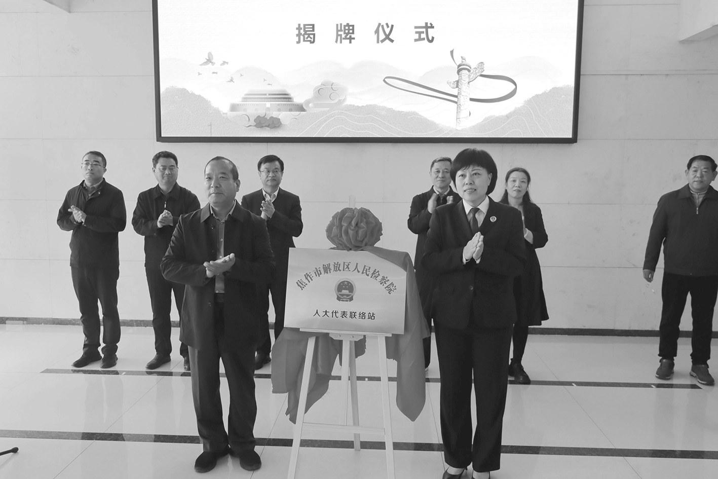 10月31日,焦作市解放区检察院举行人大代表联络站揭牌仪式。解放区人大常委会党组书记、主任石文明,解放区检察院党组书记、检察长王慧芳共同为人大代表联络站揭牌。 张运然摄