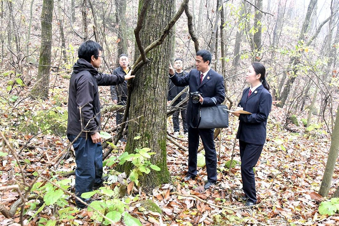 内乡县检察院在公益诉讼线索调查过程中发现,该县部分古树存在养护不到位、病虫害侵蚀、死树处置不当等问题,重要农林资源未得到有效利用和充分保护。该院检察干警遂多次进入林区进行现场勘查走访,寻找古树群落保护工作破解之策。图为11月22日,该院检察官在宝天曼原始森林实地查看古树生长状况,采集相关信息。
