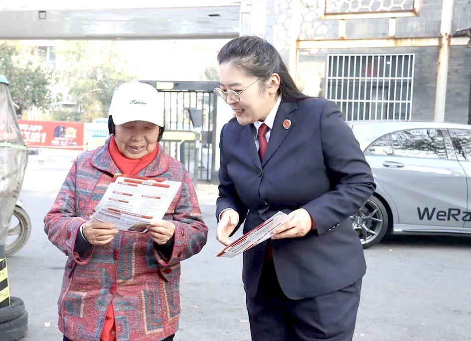 11月22日,开封市龙亭区检察院干警走上街头,给老年人发放防骗手册,结合典型案例讲解防范养老诈骗知识。