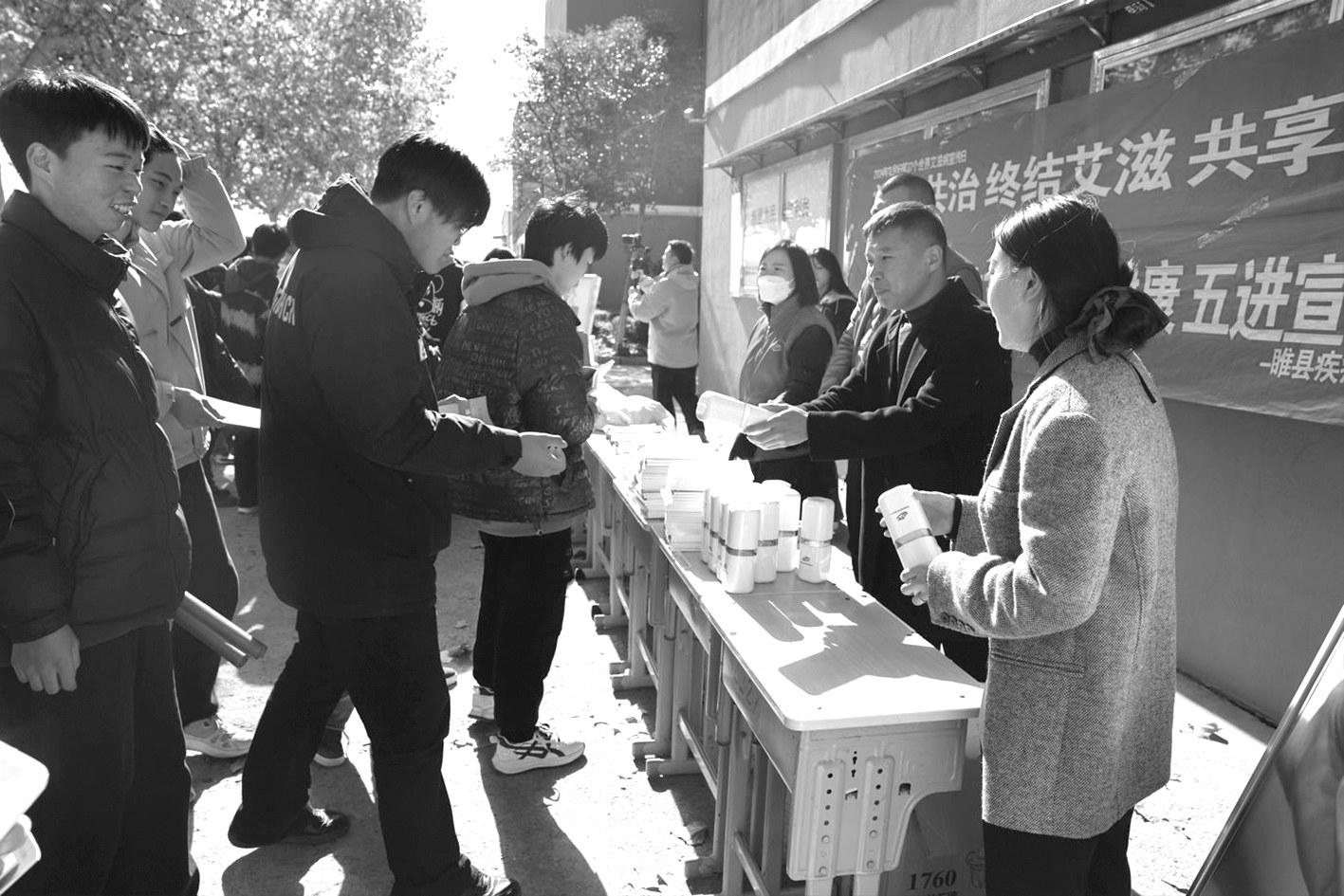 11月27日,睢县疾病预防控制中心(卫生监督执法大队)工作人员走进睢县职教中心,组织开展以“社会共治,终结艾滋,共享健康”为主题的健康科普活动,向学生普及疾病防治知识,引导学生增强自我防护意识,积极参与防艾知识的宣传和推广,传播青春正能量。