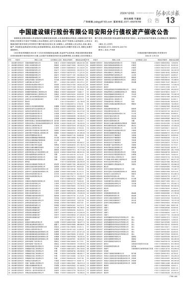 中国建设银行股份有限公司安阳分行债权资产催收公告