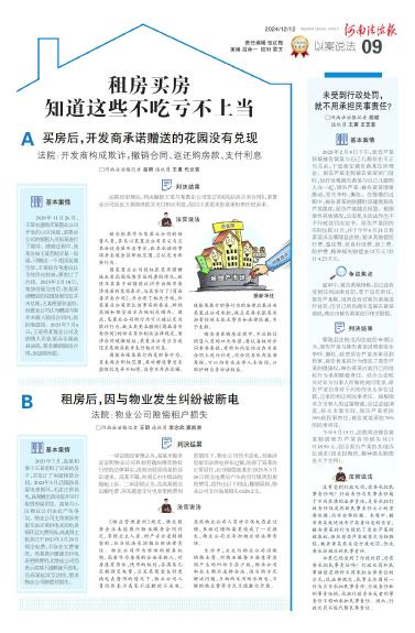 基本案情 2020年11月26日,王某有意购买某置业公司开发的小区房屋,该置业公司的销售人员张某进行了接待。磋商过程中,张某告知王某若购买某一房屋,可赠送一个花园及架空层,王某综合考虑后认为性价比较高,便签订了合同。2023年2月18日,案涉房屋交房后,张某承诺赠送的花园及架空层并未兑现,王某便要求退房,而置业公司认为赠送内容并未载入购房合同内,故拒绝退房。2023年7月6日,王某将某置业公司及销售人员张某诉至渑池县法院,要求撤销购房合同,返还购房款。 判决结果 法院经审理后,判决撤销王某与某置业公司签订的《商品房买卖合同》,某置业公司返还王某购房款并支付相应利息,驳回王某要求张某承担责任的诉求。 法官说法 被告张某作为某置业公司的销售人员,其系以某置业公司名义与王某洽谈房屋买卖事宜,张某承诺的事项并未超出其职权范围,应认定为职务行为。 因某置业公司授权张某承诺赠送王某花园及架空层的虚假情况,致使王某基于该错误认识作出购买案涉房屋的意思表示,与其签订了《商品房买卖合同》,并办理了相关手续,但某置业公司否认该事实的存在,辩称花园和架空层非在规划范围内。因此,某置业公司的行为可以被认定为欺诈行为,故王某要求撤销《商品房买卖合同》的诉求符合相关法律规定,案涉合同被撤销后,某置业公司应当返还王某购房款并支付相应利息。 因被告张某履行的是职务行为,且未超出职权范围,其对赠送事宜系虚假信息并不知情,自身不存在过错, 故张某履行职务行为的法律后果应由某置业公司承担,故王某要求张某承担责任的主张无事实和法律依据,不予支持。 购房者在购房过程中,不应轻信销售人员的口头承诺,要认真核对合同重要条款,有附加内容的应在书面合同上进行补充,对合同具体内容若存疑,可以向专业法律人士咨询,以维护好自身合法权益。 |