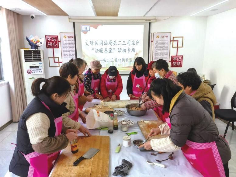 12月20日,安阳市文峰区司法局头二三司法所组织工作人员到辖区开展“法暖冬至”活动,与居民一同包饺子、话家常,并结合典型案例,向大家详细讲解防诈知识。