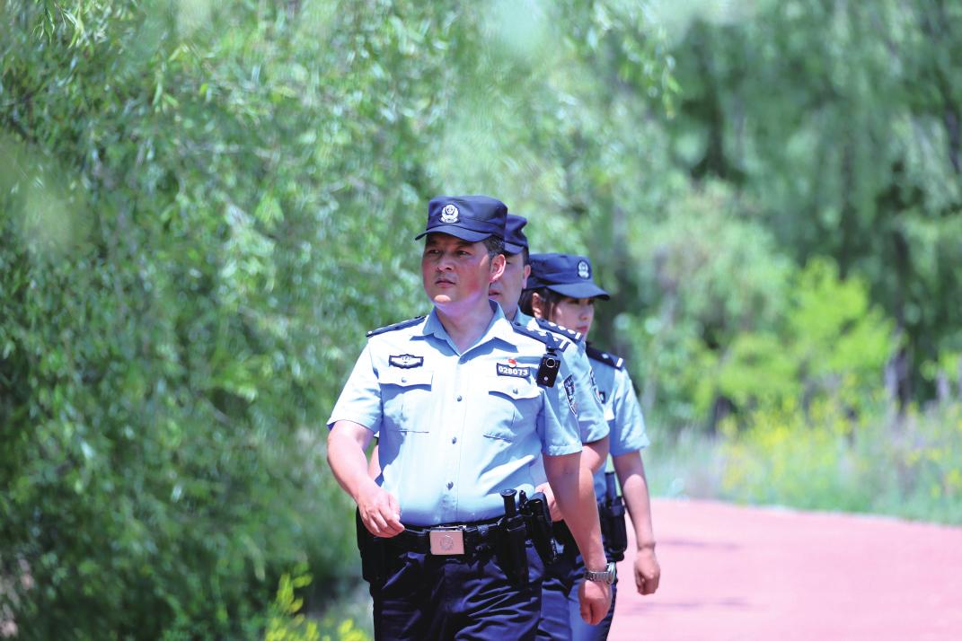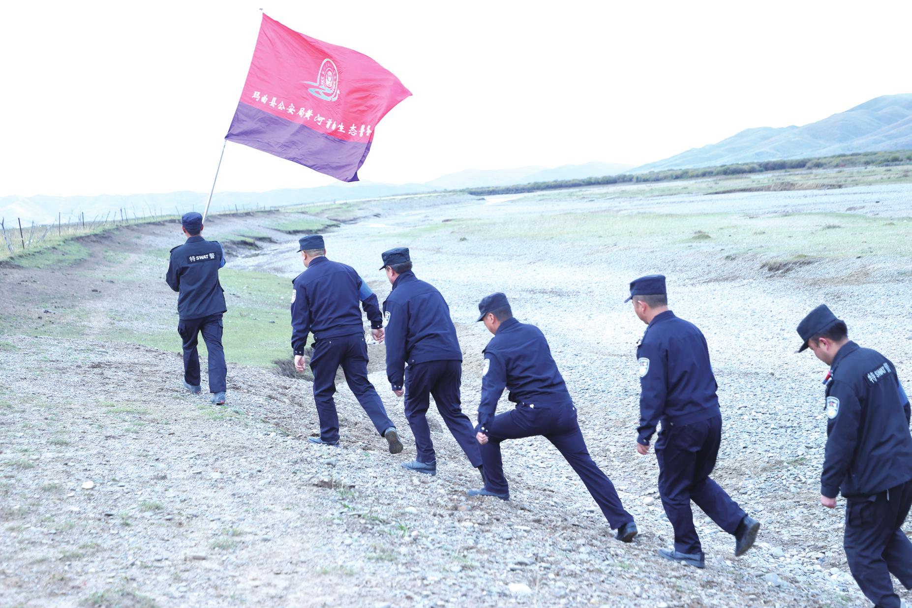 6月18日,青海省化隆回族自治县公安局民警马学良和同事在黄河湿地巡逻。