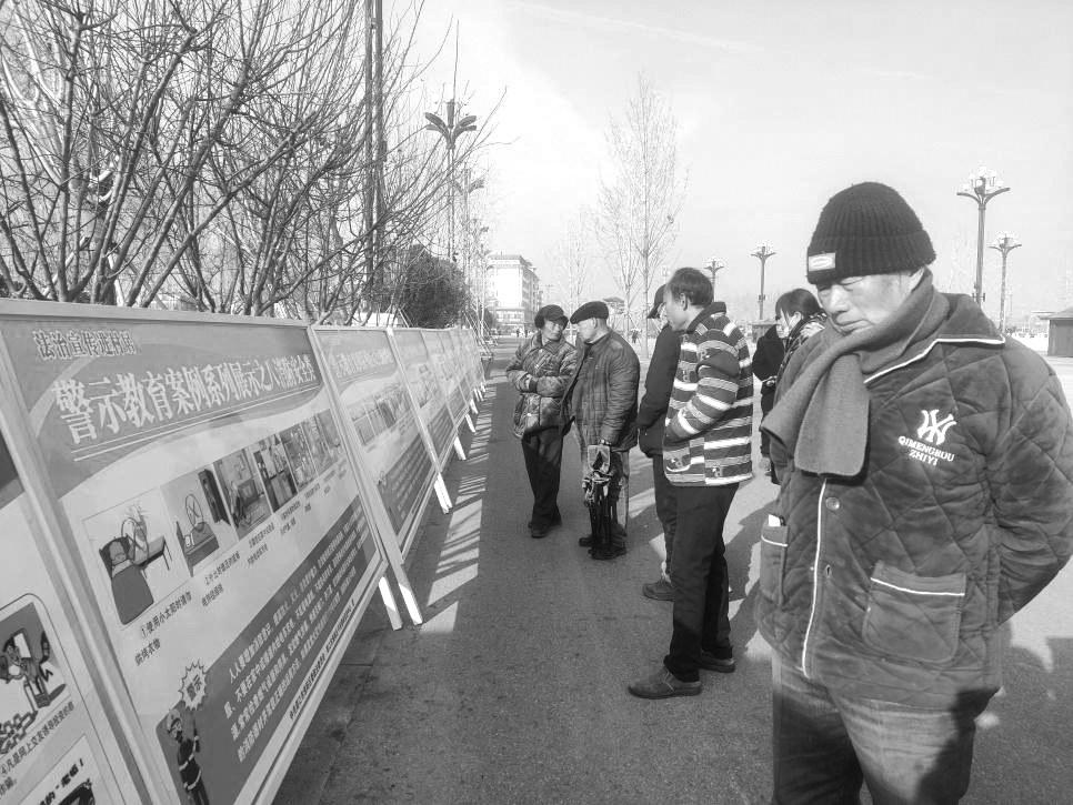 1月21日,周口市淮阳区委政法委、区平安建设促进中心组织开展“法润万家情暖寒冬”预防“民转刑”专题宣传活动。图为过往群众正观看宣传展板。河南法治报记者尹志丹通讯员曹子健摄影报道