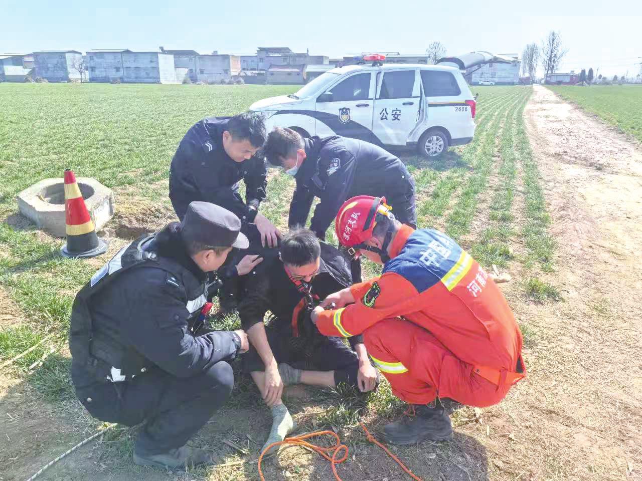 2月16日11时许,舞阳县公安局太尉派出所接到警情,一位老人不慎落入田间灌溉机井内,情况十分危急。该所民警辅警和救援人员迅速到达现场,发现老人坠入的灌溉机井内径仅40厘米,井深达16米。由于井口窄小,现场的救援人员一时无法下井。该所正在家中休息的辅警栗昂从工作群中得知该情况后,立即奔赴现场并自告奋勇:“我瘦,让我试试!”经过两次倒悬下井,克服井下缺氧的风险,栗昂终于将绳索固定在老人身上。最终,在大家的配合下将老人成功救出。河南法治报记者卫云飞 摄影报道【详见05版】 |