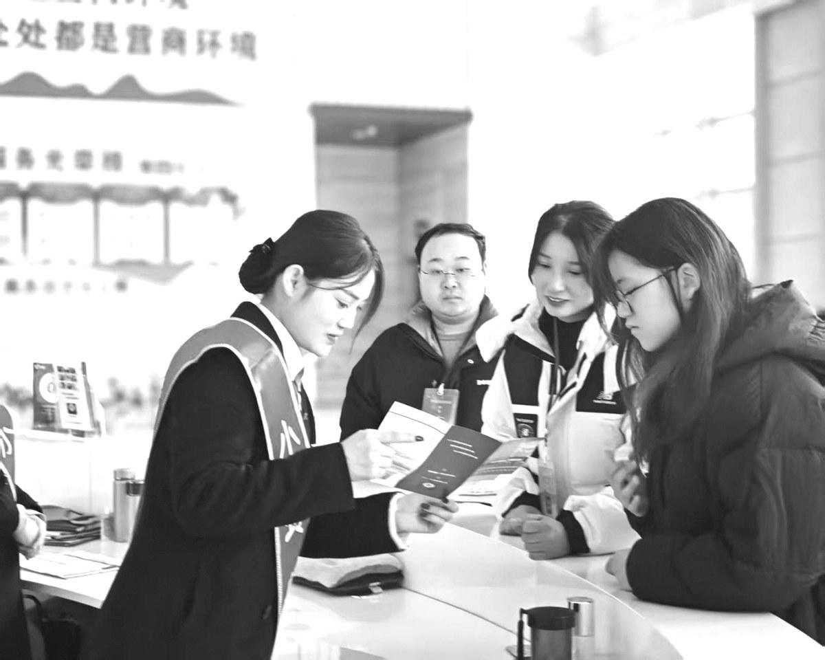 连日来,光山县纪委监委统筹“室组”监督合力,推动职能部门破解损害营商环境、阻碍高质量发展的痛点难点问题。图为2月18日,该县纪检监察干部在辖区政务服务大厅了解涉企业务办理情况。