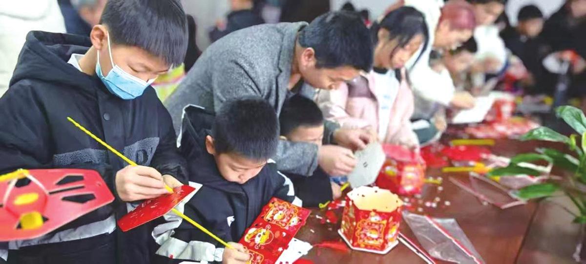 为弘扬传统文化、增进邻里情谊、丰富社区居民的精神文化生活,2月17日,濮阳市华龙区新东社区工作人员和志愿者准备好彩纸、剪刀等材料,组织居民围坐在一起制作花灯。