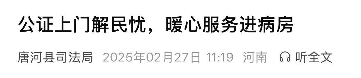 2月26日,一名中年男子因其儿子王先生术后身体虚弱,无法前往不动产登记部门办理房产出售过户手续,遂到唐河县公证处求助。公证员到医院病房后,仔细核验身份、确认意愿、制作笔录,为王先生办理委托公证。王先生在委托书上签字确认后,对公证员专程到病房提供服务深表感激。(据@唐河县司法局) 编辑点评 法律刚性与服务柔性并不冲突。唐河县公证处以“特事特办”的灵活机制,既严守公证程序确保委托真实性,又以上门跑腿代替病患群众奔波,在细节中传递为民服务温度,帮助当事人解了燃眉之急,是唐河县公证处为民服务情怀的一个缩影。点赞! |