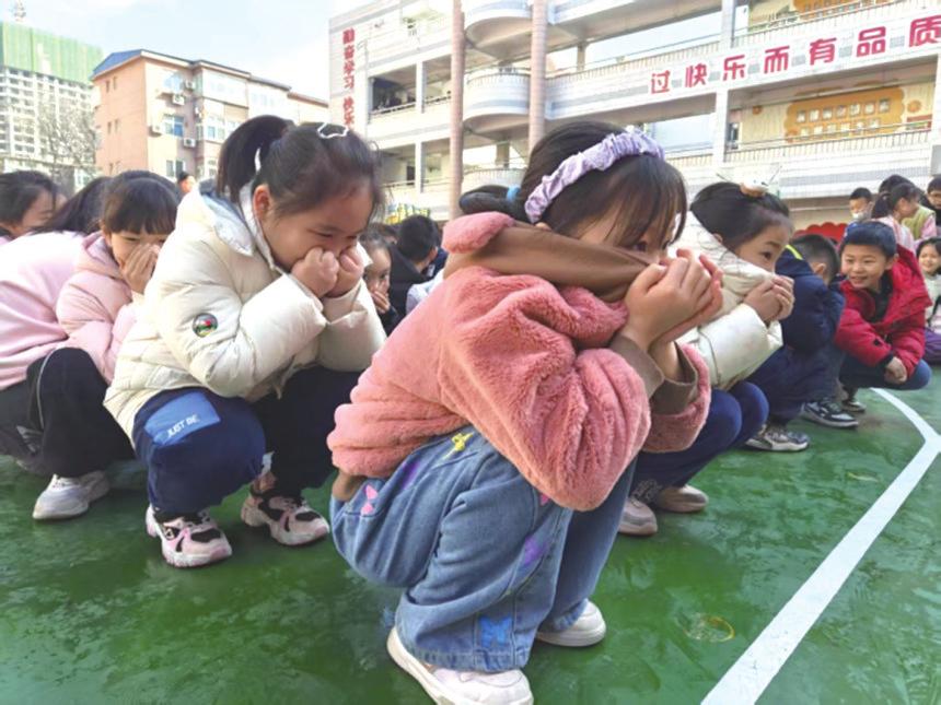 2月26日,郑州市金水区经三路小学举行春季首次校园应急疏散演练。图为消防警报响起后,该校全体师生快速有序撤离至安全地带。