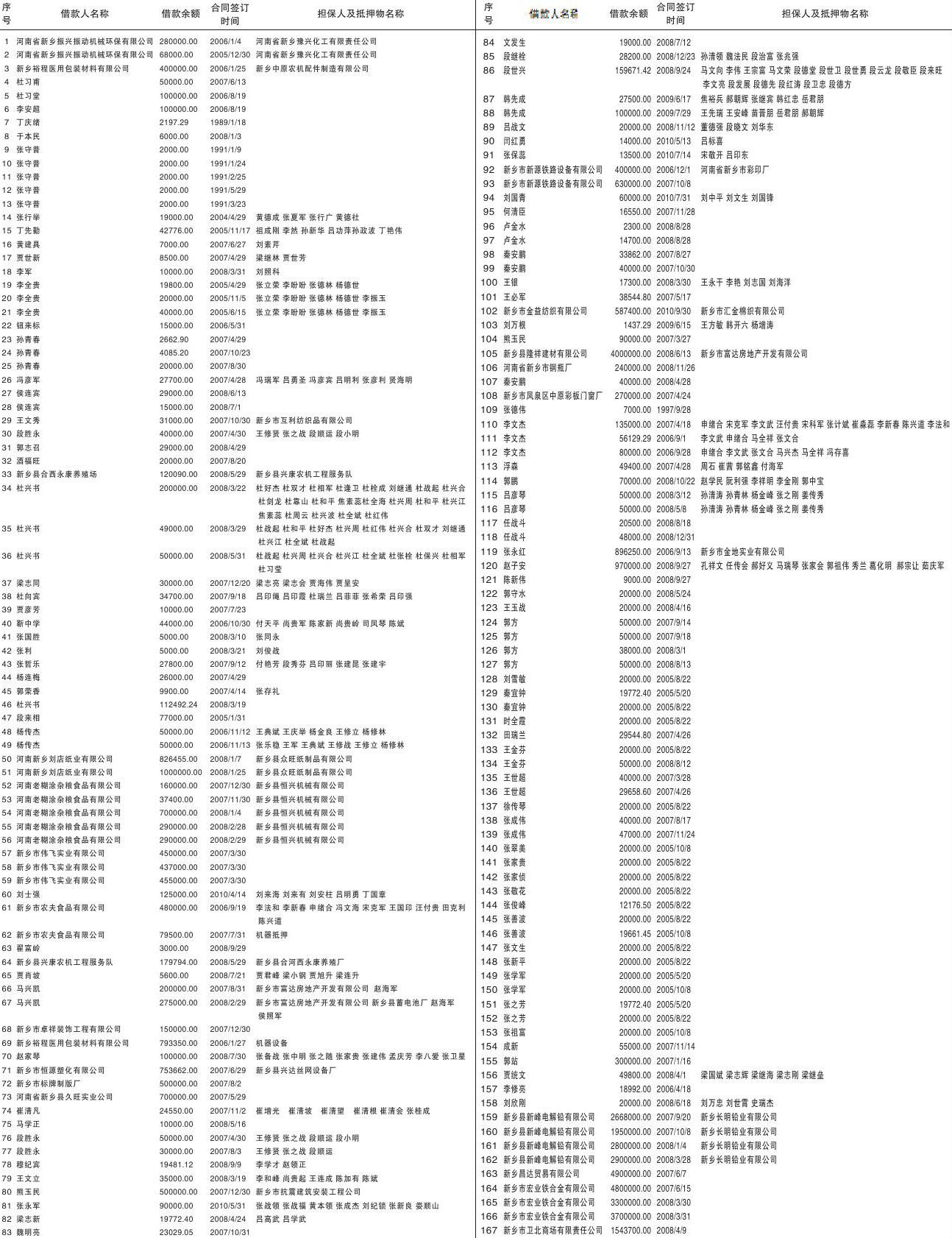 根据有关法律法规,河南农村商业银行股份有限公司新乡县支行对下列债权名单中所涉及的债权【含债权本金、利息及复利,利息、复利按中国人民银行有关规定计算】进行公告催收。请有关借款人自公告之日起尽快履行还款义务,担保人履行代偿责任(担保责任的范围依合同、借据等约定)。如借款人、担保人因各种原因更名、改制、歇业、吊销营业执照或丧失民事主体资格,请相关承债主体、清算主体代为履行义务或承担清算责任。否则我行将按国家有关法律规定进行处置。 (单位:人民币/元) 河南农村商业银行股份有限公司新乡县支行 2025年3月17日 |