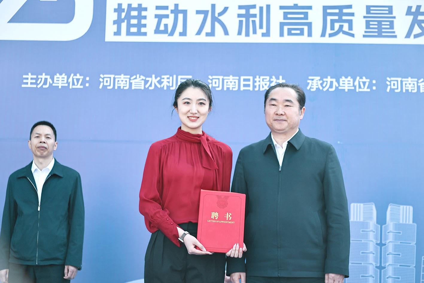 启动仪式上,本报记者曹芳获聘为河南省“护水普法大使”。曹芳发出倡议:“做护水普法的践行者!传播者!推动者!以今日之行动,济明日之清泉,这既是我们对自然的依赖,对生命的承诺,更是对未来的责任。让我们携手并肩,共同书写中华民族治水安邦、兴水利民、幸福河湖的壮美篇章!”