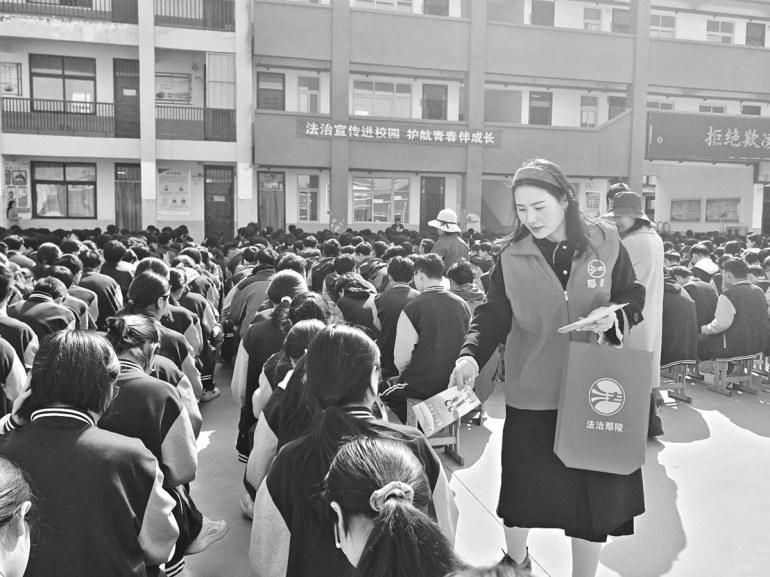 3月25日,鄢陵县司法局组织普法志愿者在该县第二初级中学开展普法宣讲活动,引导同学们提升法治意识、远离违法犯罪。