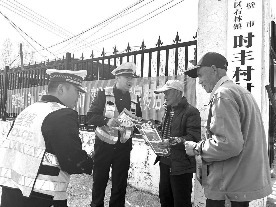 3月24日,鹤壁市公安局交通警察支队山城大队组织宣传警力,走进石林镇时丰村开展交通安全宣传活动,传递安全文明出行理念。