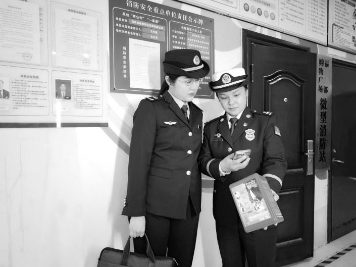为进一步加强消防产品质量监管,严打假冒伪劣消防产品,净化消防产品市场环境,在“3·15”国际消费者权益日之际,郑州市管城回族区消防救援大队联合区市场监督管理局开展了一系列消防产品专项检查行动。图为3月23日消防人员在现场执法的情景。 王晓楠摄
