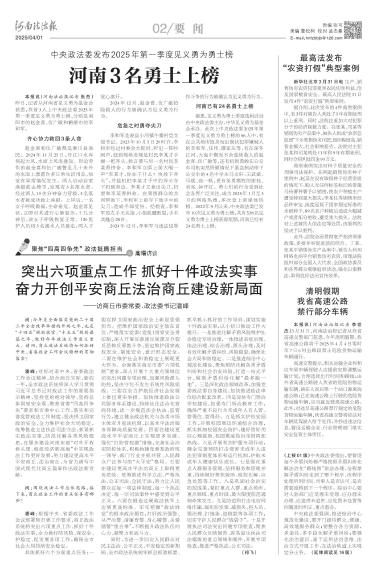 突出六项重点工作抓好十件政法实事奋力开创平安商丘法治商丘建设新局面