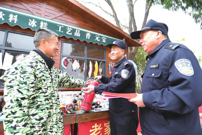 连日来,浚县公安局风景区派出所组织民警辅警深入大伾山景区,开展防火和文明祭祀知识宣传和隐患排查工作,形成源头管控、群防群治的良好局面。河南法治报记者李杰通讯员蒋玉河摄影报道
