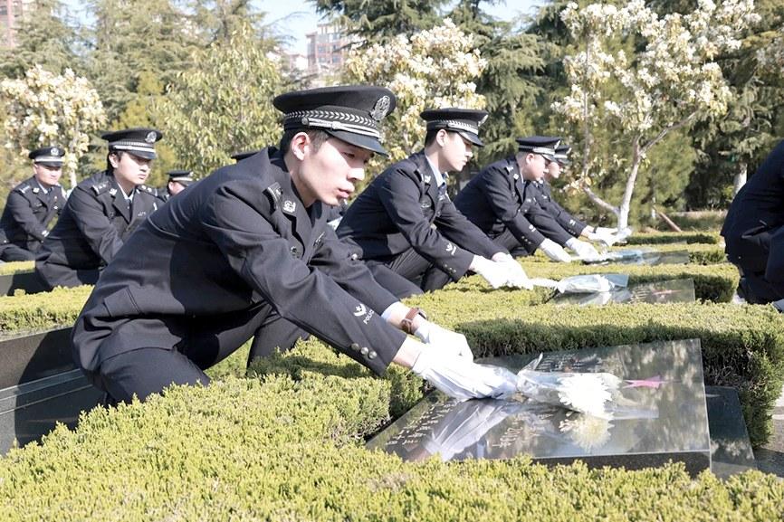为深切缅怀革命先烈、传承红色基因,4月4日,省许昌监狱组织在职警察和退休党员,到许昌市烈士陵园开展清明祭扫活动。 李亚伟摄