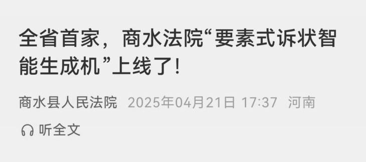 全省首家!引进“要素式诉状智能生成机”
