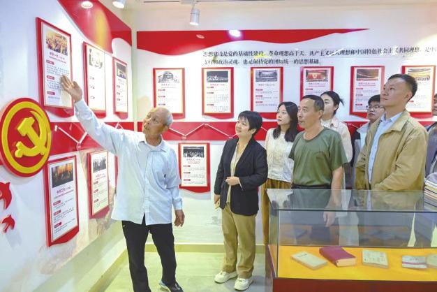 4月25日,漯河市源汇区纪委监委组织青年纪检监察干部,在党员政治生活馆开展“青春共向党”活动,邀请老党员讲解红色历程。 尤亚辉摄