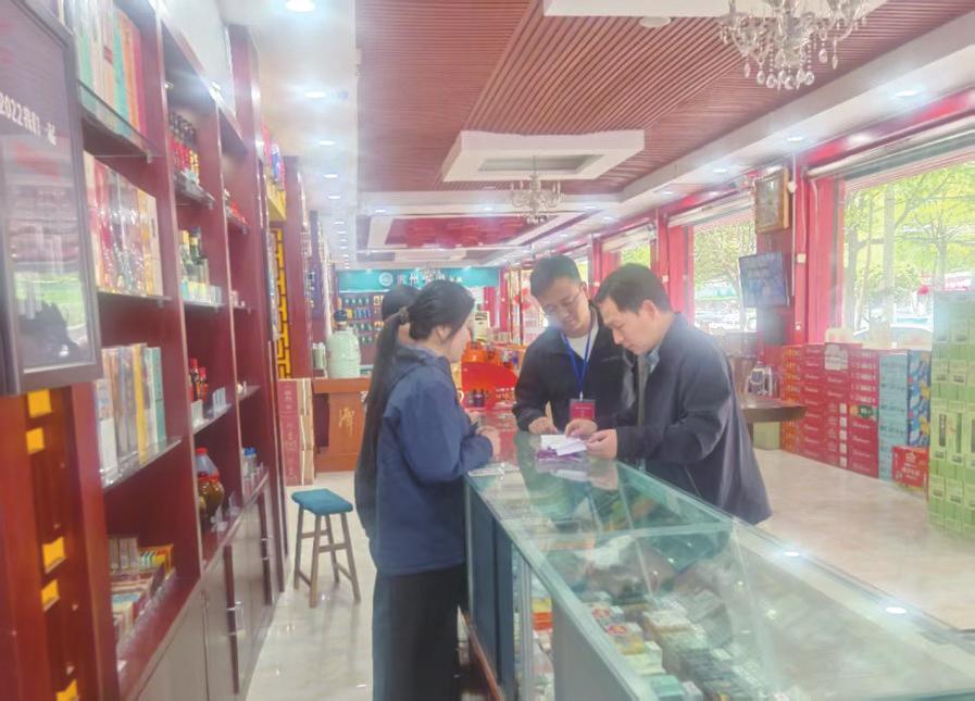 为推动中央八项规定精神落细落实,光山县纪委监委开展明察暗访。图为4月24日,该县纪检监察干部在商超了解相关情况。杨刚摄
