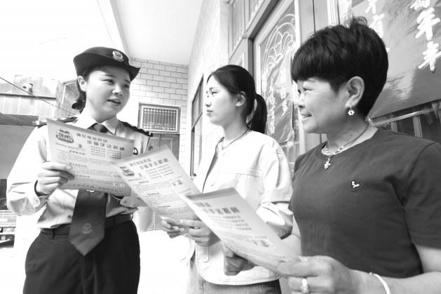 连日来,浚县公安局组织民警、辅警深入辖区走村入户,通过发放反诈宣传单等方式,增强群众电诈自我防范意识。图为5月7日,白寺派出所民警孙丹华向群众宣传讲解防诈知识。