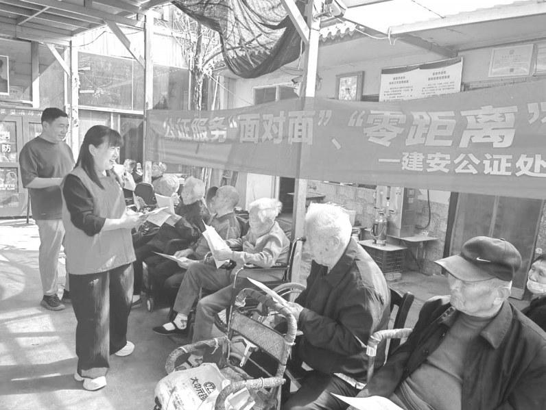 日前,许昌市建安公证处工作人员走进辖区养老院,开展“公证服务下基层”活动,聚焦老年群体需求,讲解民法典、老年人权益保障法等相关法律法规以及办理公证业务的手续和流程。