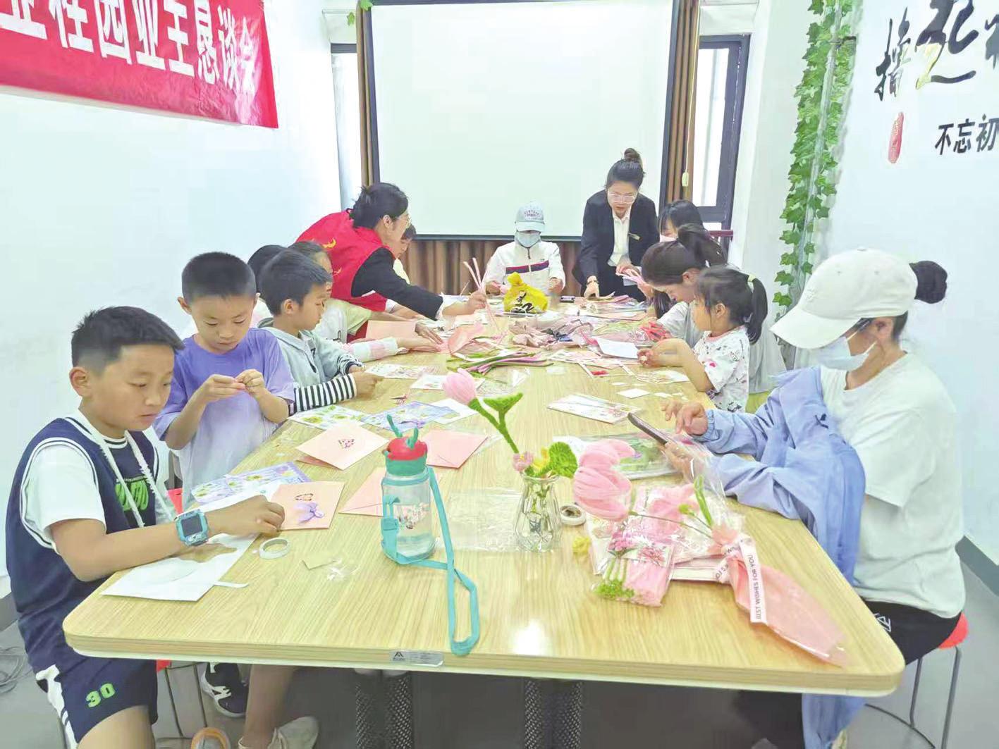 为弘扬中华民族孝亲敬长传统美德,濮阳市华龙区多个社区开展了一系列暖心活动,给母亲们送上最温暖的问候。图为5月11日,该区锦东社区邀请小朋友和他们的母亲共同制作精美的花束,鼓励小朋友向自己的母亲表达爱意。