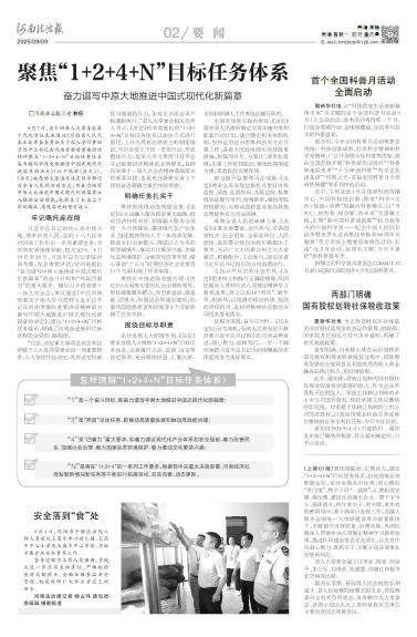 “1”是一个奋斗目标,即奋力谱写中原大地推进中国式现代化新篇章; “2”是“两高”总体任务,即推动高质量发展和推动高效能治理; “4”是“四着力”重大要求,即着力建设现代化产业体系和农业强省,着力改善民生、加强社会治理,着力加强生态环境保护,着力推动文化繁荣兴盛; “N”是落实“1+2+4”的一系列工作要求,根据党中央重大决策部署、河南经济社会发展新情况新任务等不断进行拓展深化、充实完善、动态更新。 |