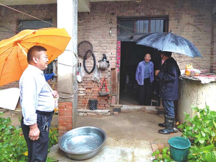 9月10日22时,睢县出现暴雨天气。9月11日7时许,睢县白楼乡阮洼村网格长孙旭西、孙学书到村内独居老人家里开展安全排查。 李慧摄