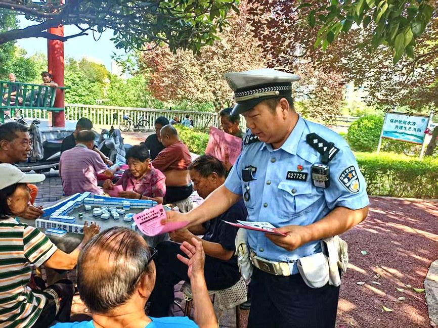 日前,洛阳市公安局交管支队勤务一大队民警在辖区七里河社区开展交通安全宣传活动,向居民讲解“一盔一带”等交通安全常识。 赵华西 摄