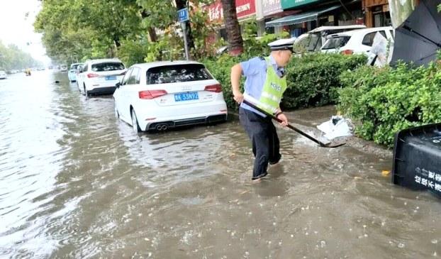 |  | | 9月11日9时许,郑州市公安局公安交通管理局交警三支队民警帮助熄火车辆驾驶员推车。邢红军摄 |  | | 9月11日,鄢陵县公安局交警大队民警协助城管部门清理排水管道。 甄忠杰 摄 |